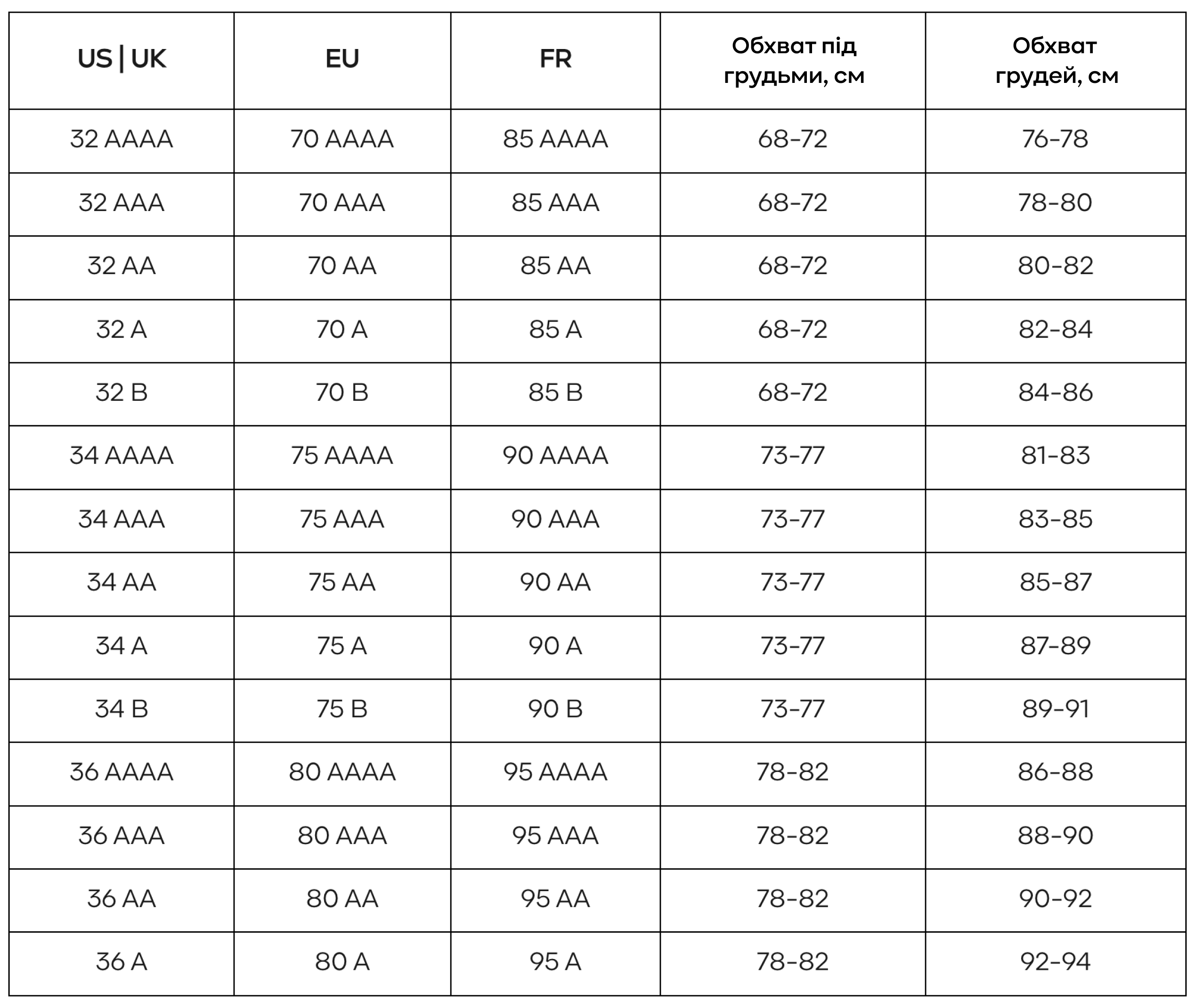 Після вимірювання перевірте нашу таблицю розмірів для вибору правильного розміру бра.