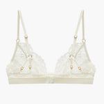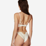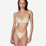 Трикутний бра Obsession декорований мереживом і тонкою сіткою. Шовкові бретельки і відсутність кісточок, лише ультра-комфортна еластична основа, покрита шовком, забезпечують ідеальну підтримку і відчуття. Бюстгальтер прикрашений потрійними деталями шлейки на спині. Завершіть комплект з Tанга Obsession в кольорі айворі і поєднайте з вашим улюбленим одягом.