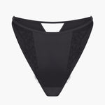 Obsession Танга з шовку і мережива в чорному кольорі мають крій, що відкриває ноги з мереживною окантовкою спереду і шовковою задньою частиною із трикутним вирізом. Тонкі бокові шовкові шлейки з регуляторами. Ви можете поєднати їх з Бюстьє Obsession, Балконетом Obsession або з Трикутниками Obsession в чорному кольорі.