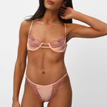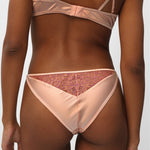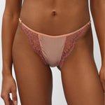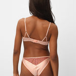 Passion Танга з шовку і мережива в персиковому кольорі мають спокусливий крій з романтичним м’яким мереживом. Суміш персикового, оранжевого і трохи фіолетового кольорів. Красивий трикутний виріз на задній частині. Тонкі регульовані бретельки. Створіть комплект з Балконетом Passion в персиковому кольорі.